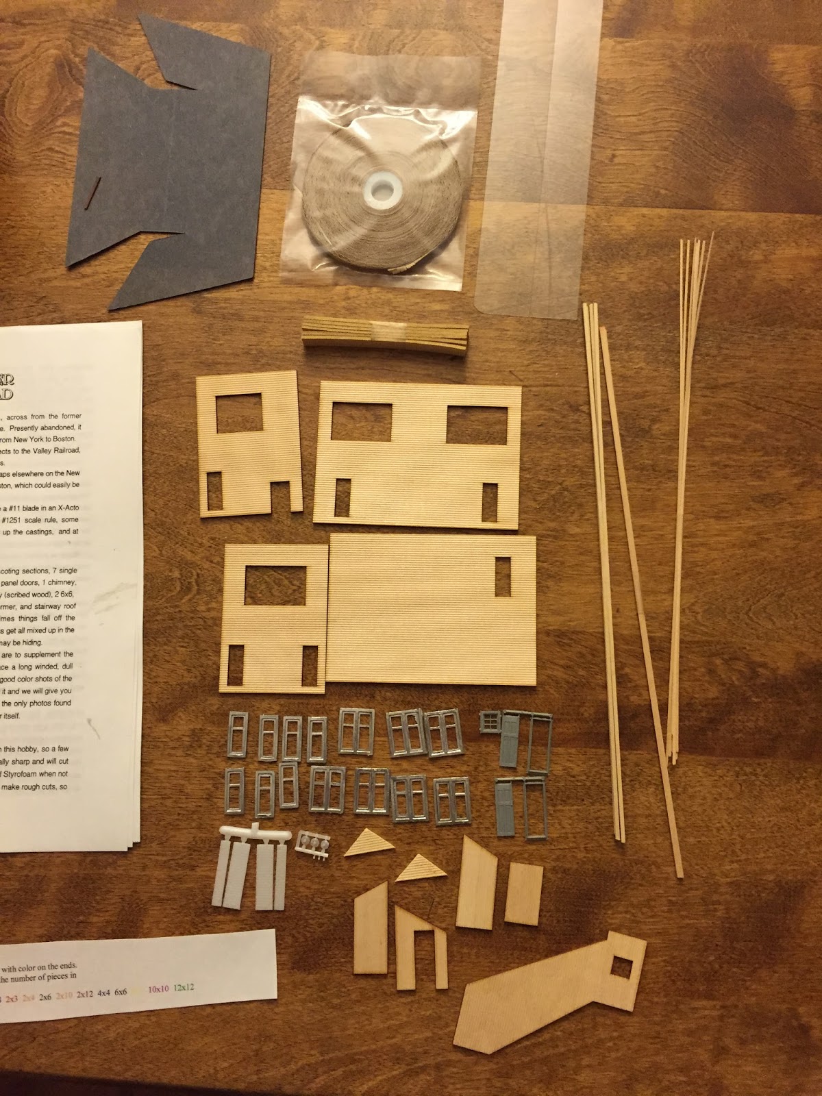 It looks like the kit either shipped without the needed parts or they somehow disappeared before I got the kit. I can use some of my on-hand 1x6 stripwood and can probably scratchbuild the gable end and staircase roof if I have to, but I have an email out to the manufacturer to see if they'd be willing/able to supply the missing parts.