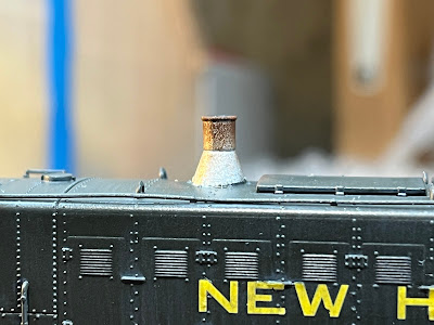 Once the weathering is done (actually, I still have a little bit of final weathering to do - but I ran out of time before the NERPM where I really wanted to finish this loco enough to display), it's time for final assembly. THAT ended up being close to the most stressful part of this entire build - both because I didn't want to mess anything up, and because I was literally putting everything back together with only hours to spare before my self-imposed NERPM deadline (BTW - the most stressful part of the build was having to solder not one, but TWO, 30 gauge wires that had broken off of the PC board end of the PowerPack - with only a few hours left to go...).